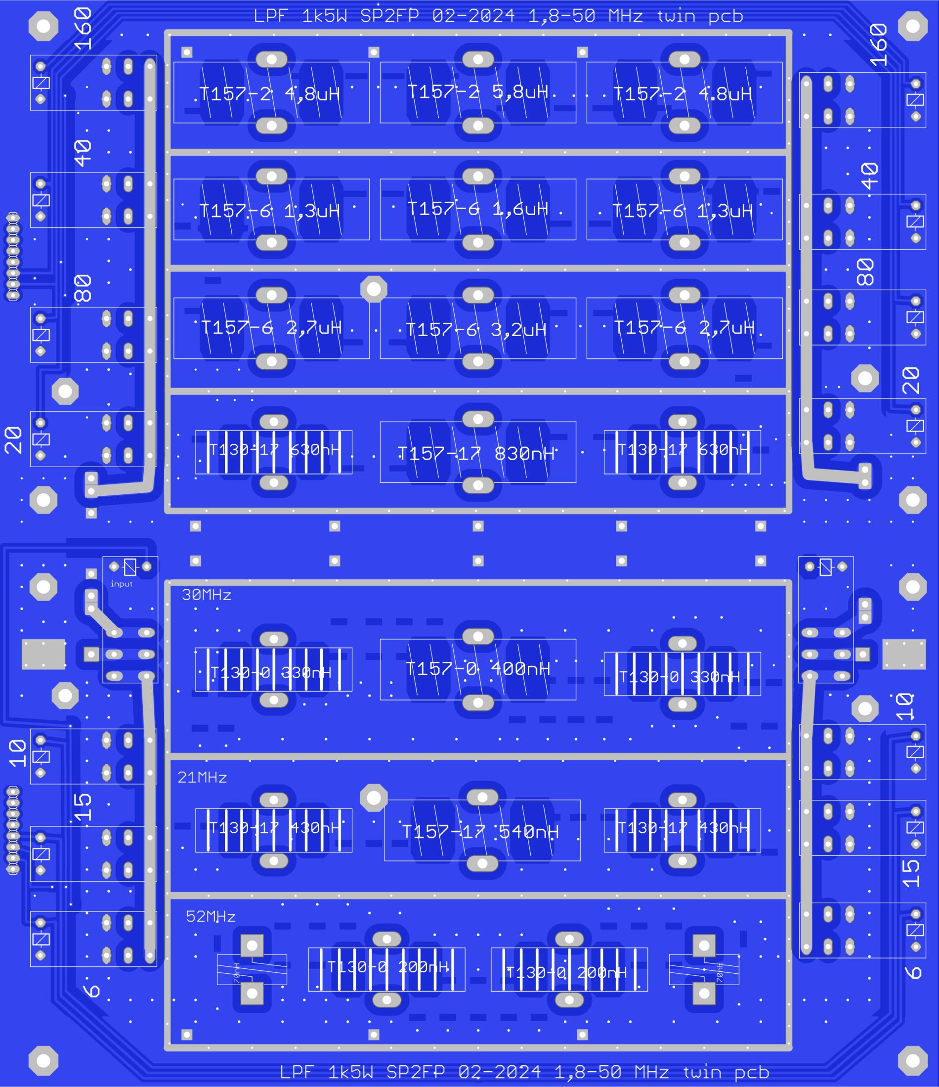 Płytka PCB do budowy LPF filtr dolnoprzepustowy 1500wat 7 zakresów kf 2pcb